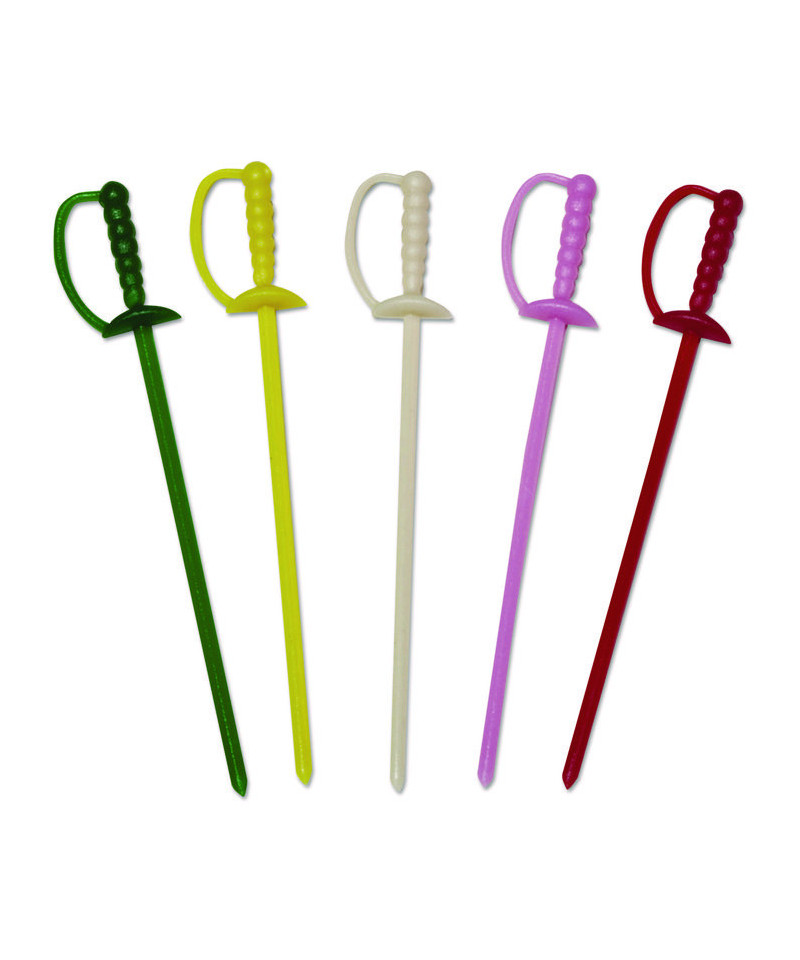 Appealing miniature sword picks add color and festivity to your meals and drinks. Perfect for use with sandwiches, appetizers, beverages and more. Use them to spruce up cocktails, for cherries, olives or simply to identify drinks.
