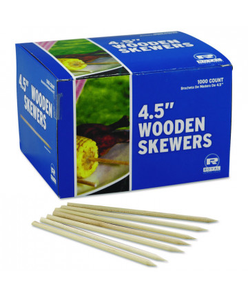 Add to cart Wooden Skewers, 4.5", White, 10,000/Carton $223.33 Suitable for grilling, deep-frying, steaming, baking and fondue. Disposable for easy serving and clean up. All-natural wood construction.