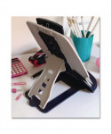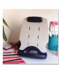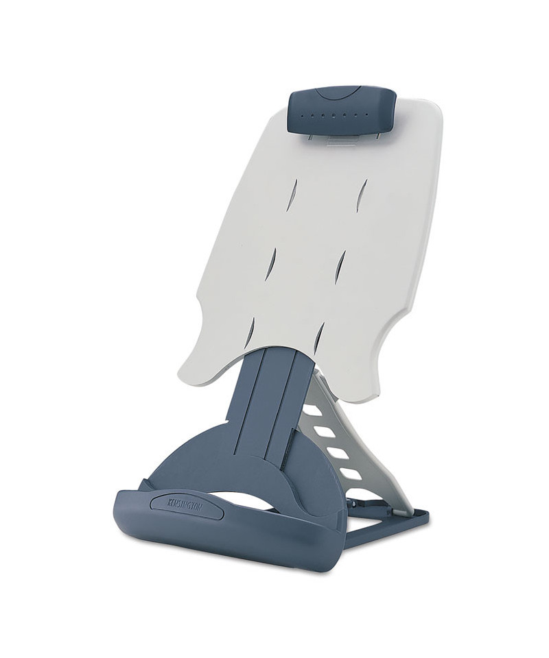 Place copy or books in a more comfortable viewing position. Allows ergonomic copy and book positioning between keyboard and monitor with angle adjustment. Large, firm copy clip holds up to 50 landscape or portrait sheets. Helps organize papers and projects for greater productivity. Collapses for easy portability.