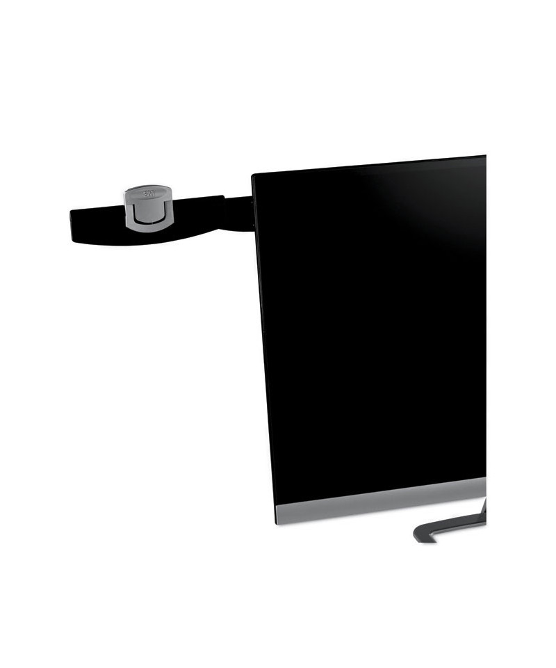Attaches to either side of most flat panel monitors and moves out of the way when not in use. Includes Command™ Adhesive to hold securely yet remove cleanly.
