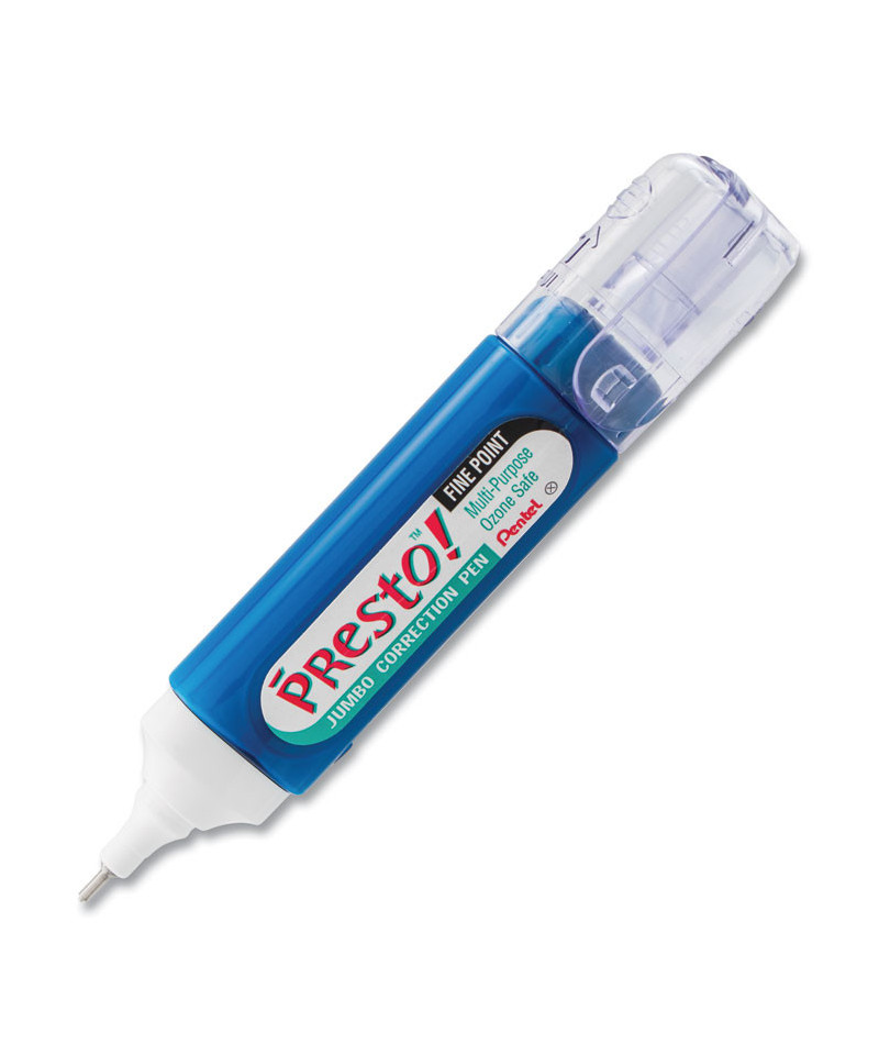 Presto!™ Multipurpose Correction Pens deliver an opaque correction fluid that flows easily and dries silky smooth, offering you complete coverage with no show-through or messy flaking. Its needle-point metal tip is also perfect for correcting small print while its handy pocket clip provides on-the-go convenience. Ozone-safe formula works on ballpoint, rollerball and felt tip inks as well as laser photocopies, inkjet printouts and typewritten documents.