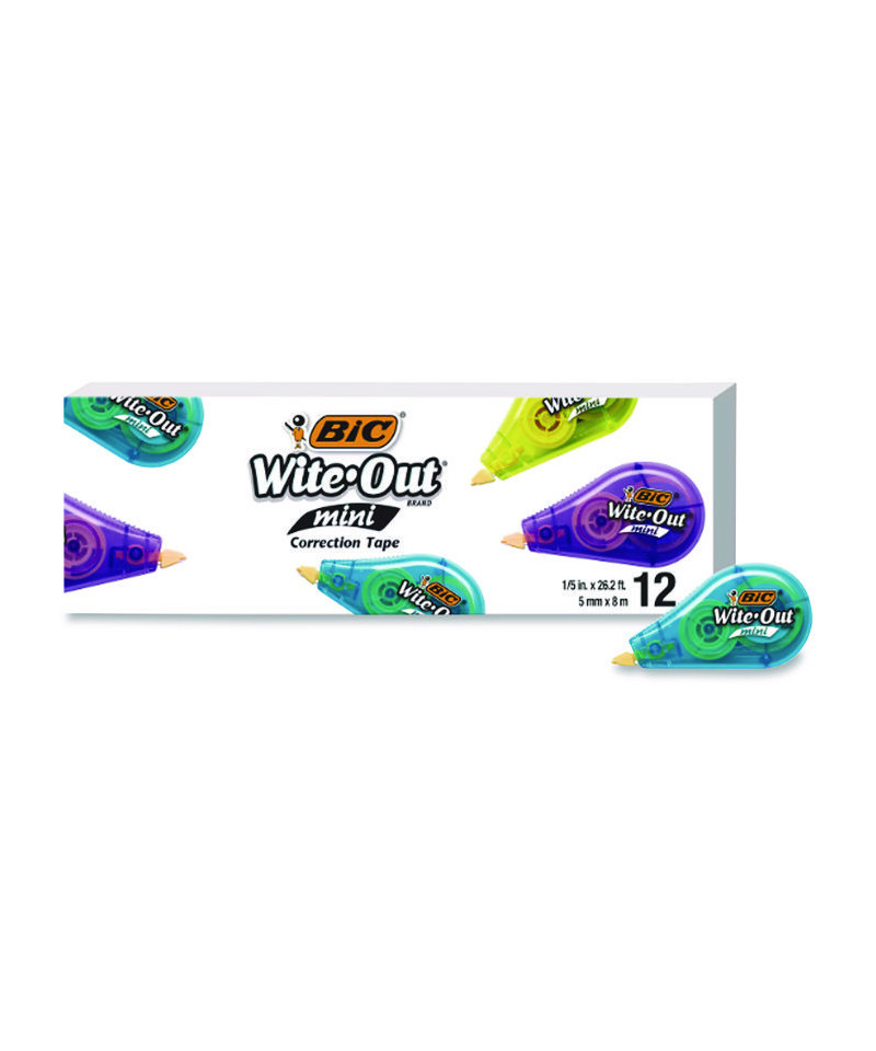 Fix mistakes fast with BIC Wite-Out Brand Mini Correction Tape! Suitable for lefties and righties, these brightly-colored correction tape dispensers are compact enough to fit in any bag. The correction tape goes on dry, allowing you to make instant corrections with no mess and no waiting time, while the convenient size allows hands of all sizes to make quick and accurate corrections.