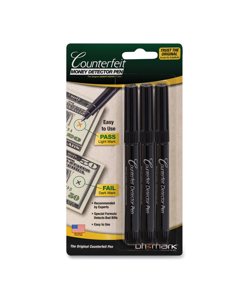 Simply make a small mark on U.S. currency. Chemically sensitive ink works instantly. An amber mark passes the test, while a dark brown or black mark fails, meaning the bill is likely counterfeit. Works on all new design U.S. currency (bills series 1959 and later).