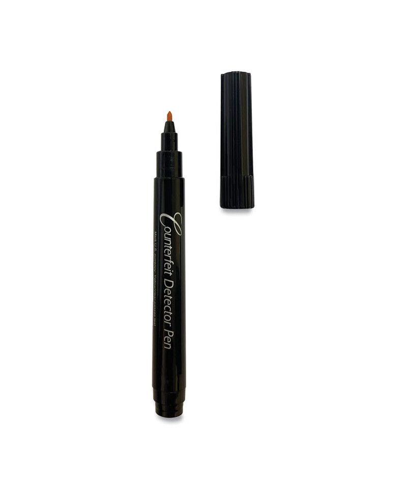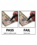Simply make a small mark on U.S. currency. Chemically sensitive ink works instantly. An amber mark passes the test, while a dark brown or black mark fails, meaning the bill is likely counterfeit. Works on all new design U.S. currency (bills series 1959 and later).