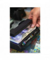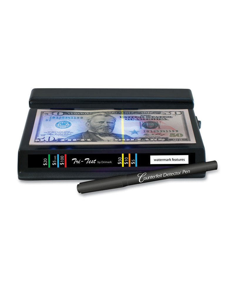 Multifunction machine uses the latest in ultraviolet LED technology to provide the ultimate in security against counterfeit currency including washed bills. Detects the UV sensitive security thread in U.S. currency in denominations of $5 and larger. Use the original Counterfeit Detector Pen to test the paper, the UV LEDs to reveal the UV security thread, and backlight the bill with the white LEDs to reveal watermarks and micro-printing. Versatile unit also authenticates driver's licenses, passports, international currencies, credit cards, cashier's checks and more. A powerful, compact, portable and affordable solution for any point of sale application. Great for bars and restaurants that check IDs and payment methods. LEDs last for years and are powered by three C batteries or the optional AC adapter DRI351TRIAD (both sold separately).