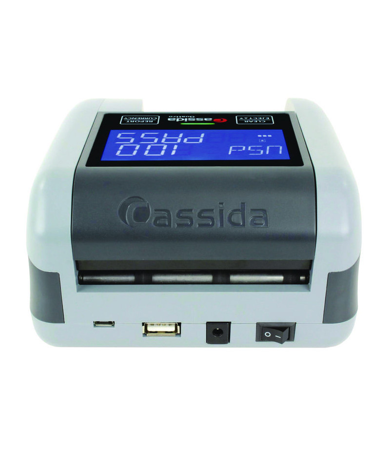 Cassida Quattro is a reliable and user-friendly fake money detector for busy cash businesses. It accepts bills in any orientation and instantly confirms if it's real or fake. The display shows the bill's value and status, avoiding errors due to incorrect insertion. The Quattro uses Cassida's M Algorithm for detection, providing accurate and dependable protection with few false rejects. Cassida's Counterfeit Shield guarantees to repay any fake bills that pass through the Quattro. The Quattro is easy to upgrade and has a rechargeable battery, making it portable and convenient for crowded events. Choose Cassida for dependable and efficient counterfeit detection.