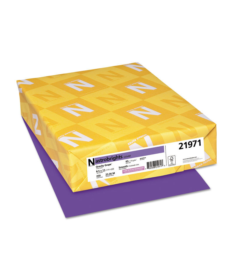 Color Cardstock, 65 lb Cover Weight, 8.5 x 11, Gravity Grape, 250/Pack