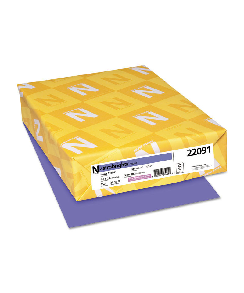 Color Cardstock, 65 lb Cover Weight, 8.5 x 11, Venus Violet, 250/Pack