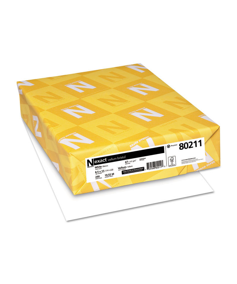 Exact Vellum Bristol is perfect for all medium to heavyweight applications-especially direct mail, greeting cards and business reply cards. The semi-smooth finish is a favorite of paper crafters. Guaranteed performance in laser and inkjet printers. Acid-free for archival quality.