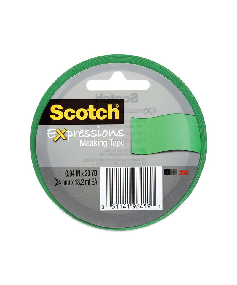 Expressions Masking Tape, 3" Core, 0.94" x 20 yds, Primary Green