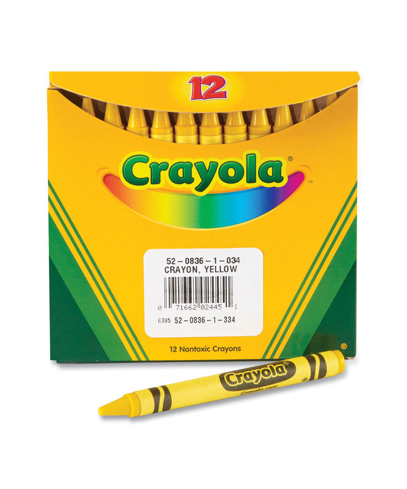 Bulk Crayons, Regular Size, 0.31" x 3.63", Yellow, 12/Box