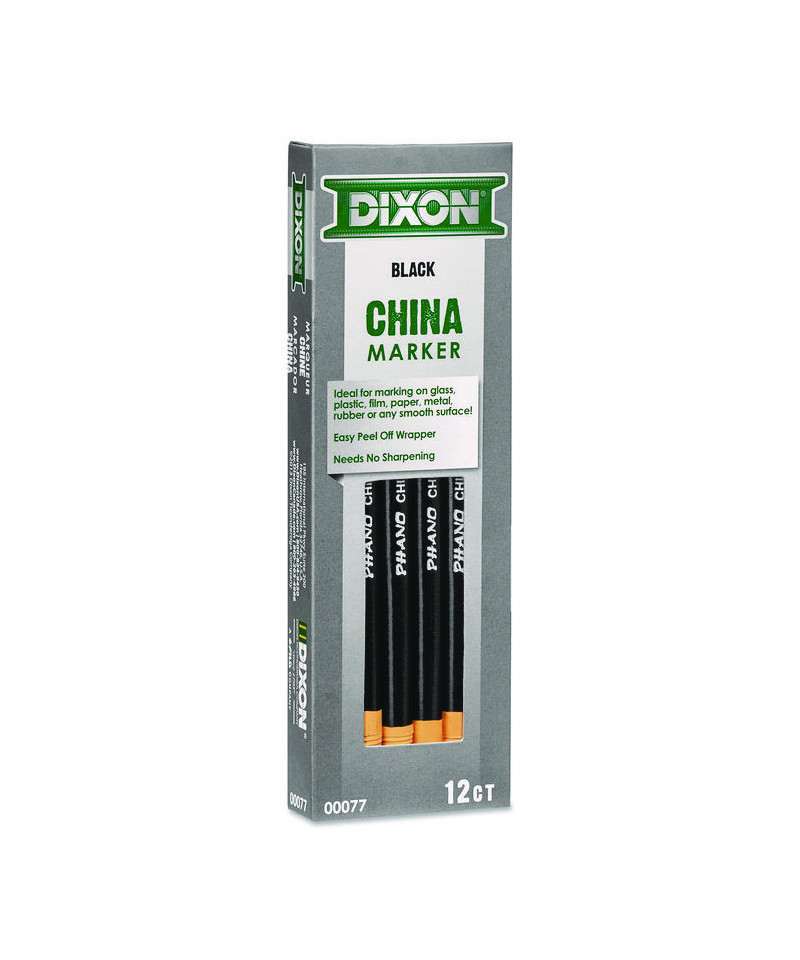 Add to cart China Marker, Black, Dozen $13.63 Ideal for marking on glass, plastic, film and most surfaces. Easily wipes away clean from smooth surfaces. Paper-wrapped with tear string sharpening.
