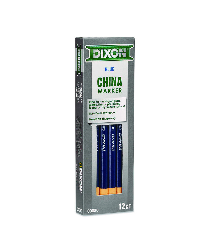 Add to cart China Marker, Red, Dozen $13.63 Ideal for marking on glass, plastic, film and most surfaces. Easily wipes away clean from smooth surfaces. Paper-wrapped with tear string sharpening.