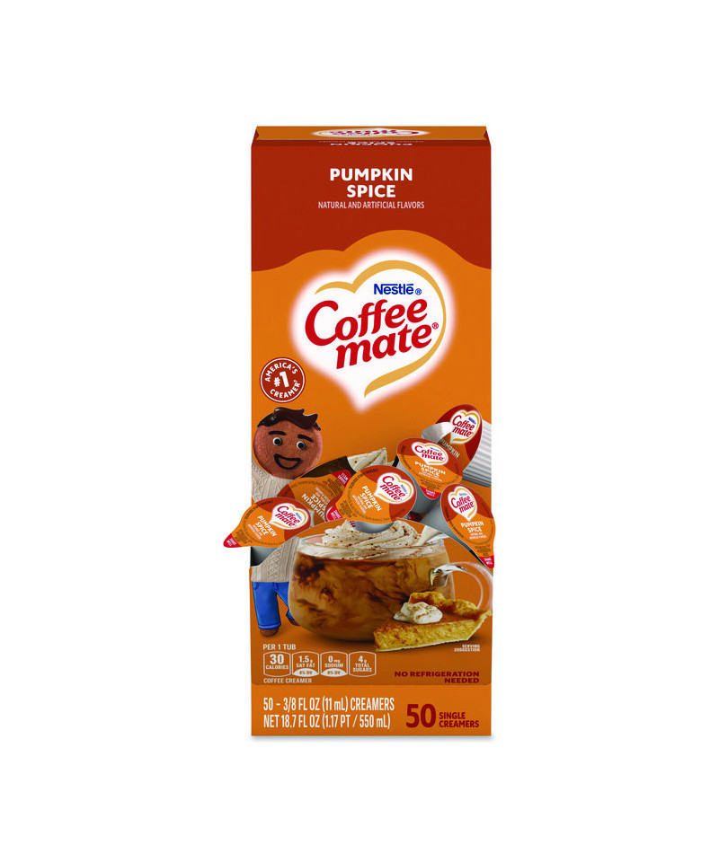 Liquid Coffee Creamer, Pumpkin Spice, 0.38 oz. Mini Cups, 50/Box