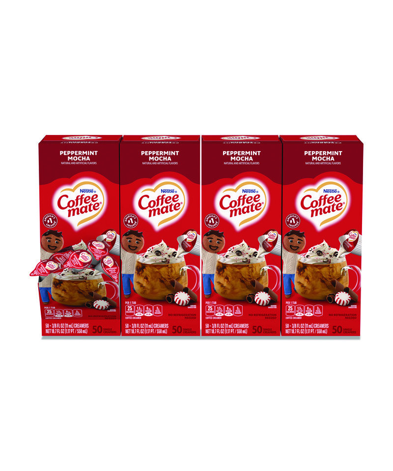 Liquid Coffee Creamer, Peppermint Mocha, 0.38 oz Mini Cups, 50/Box, 4 Boxes/Carton