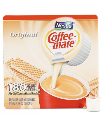 Stir up the perfect cup with Coffee mate, America's #1 creamer brand. It is shelf stable with no refrigeration needed. Coffee mate liquid creamer singles retain their delicious flavor at room temperature for up to nine months unopened. Find your perfect match with NESCAFE Coffee and Coffee mate liquid creamer singles. All Coffee mate foodservice single serve creamers are cholesterol-free, gluten free and kosher dairy. See the full Coffee mate ingredients statement for Coffee mate creamer ingredients. Coffee mate has your coffee creamer needs covered. Delight your employees, customers and guests by offering Coffee mate liquid creamer in your workplace, breakroom or kitchen.