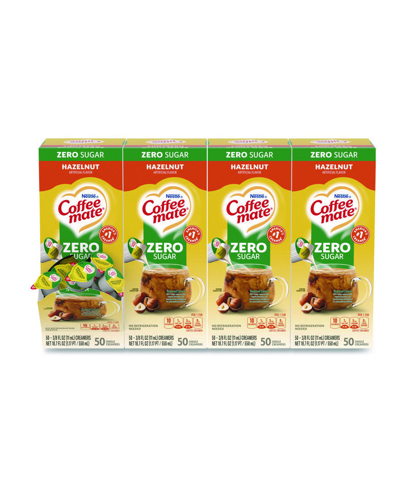 Liquid Coffee Creamer, Zero Sugar Hazelnut, 0.38 oz Mini Cups, 50/Box, 4 Boxes/Carton