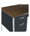 Solid and stable desk with square edge laminated top that is scratch and stain-resistant. Built with a durable, powder-coated steel frame with chrome-plated 1" square tubular steel legs. Includes a full extension, locking file drawer with telescoping ball bearing slides to accommodate hanging file folders. Box drawer operates on steel roller suspensions. Aluminum drawer handles. Three-quarter height modesty panel provides privacy. Leveling glides adjust for uneven floors. Center drawer solid separately.