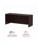Adaptable office that configures in a variety of ways to suit your needs, combining unsurpassed design flexibility with durable construction. Turn any room into a professional and organized office. Commercial grade work surfaces and side panels are water, scratch, and dent resistant. Distinctive charcoal accent line beneath worksurface. Durable edge banding. Two wire management grommets. Full-height modesty panel.