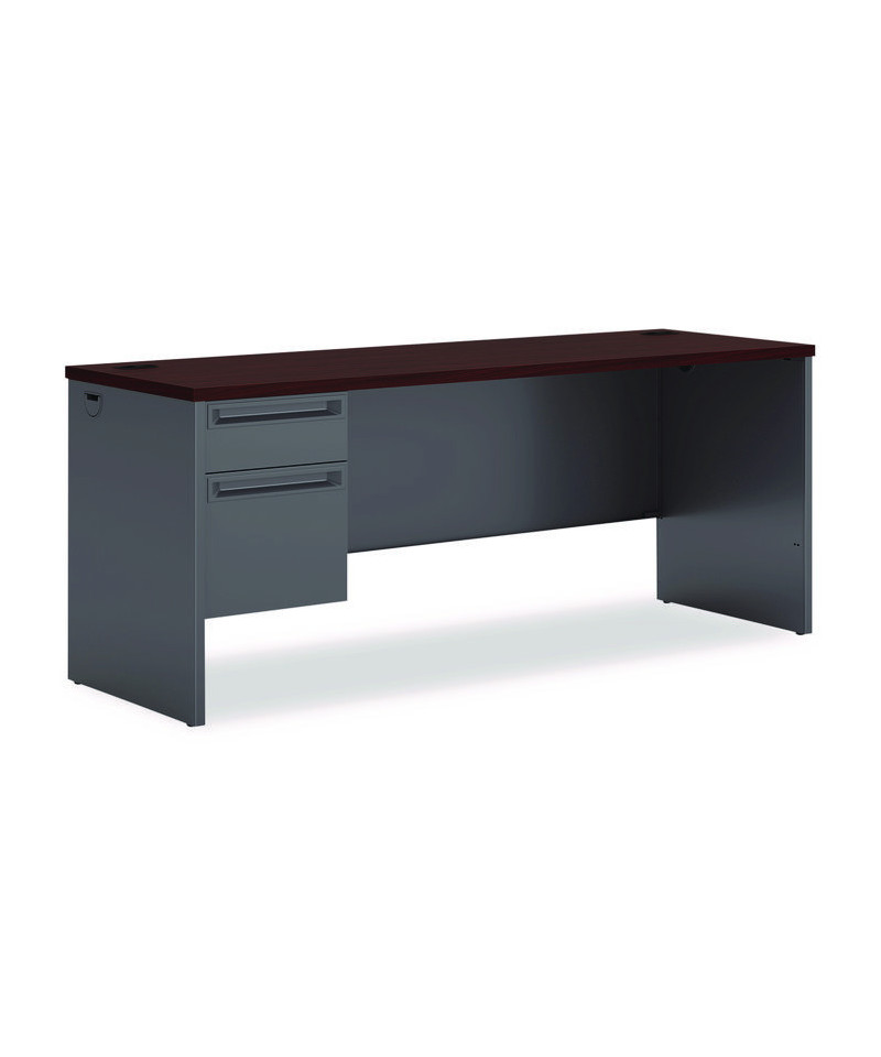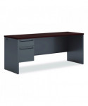 Steel frame with steel-reinforced, high-pressure laminate top for superior rigidity and strength. Drawers operate on heavy-duty steel ball bearing suspensions. High-sided, full-extension file drawer accepts hanging file folders; box drawer extends three-quarters. HON® "One Key" core removable locks. Cord management with ports and hidden channels.