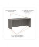 Adaptable office that configures in a variety of ways to suit your needs, combining unsurpassed design flexibility with durable construction. Turn any room into a professional and organized office. Commercial grade work surfaces and side panels are water, scratch, and dent resistant. Distinctive charcoal accent line beneath worksurface. Durable edge banding. Two wire management grommets. Full-height modesty panel.