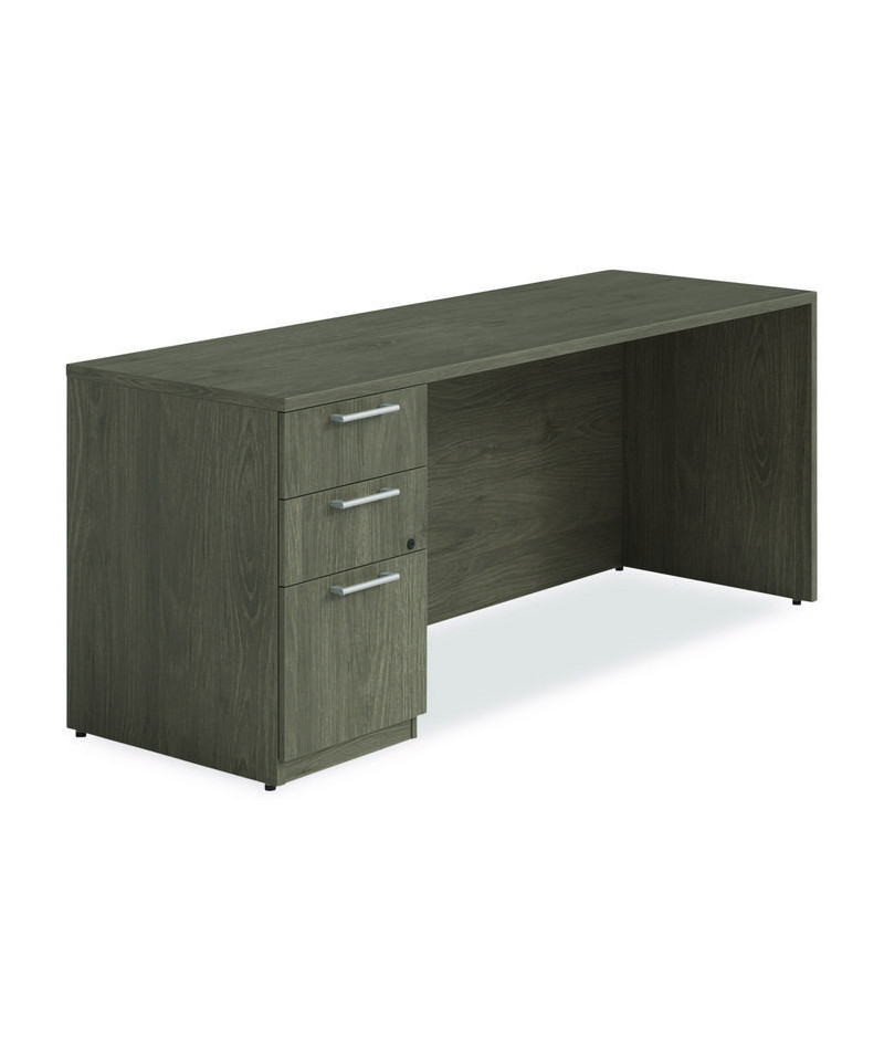 A versatile and durable addition to any office environment, combining modern design with high functionality. Built with a single pedestal, this credenza provides efficient storage space for important files and office supplies, keeping your workspace organized and clutter-free. Its laser edge band design adds a clean, finished look that enhances the overall aesthetic of your office. Constructed from high-quality particleboard and featuring a thermofused melamine (TFM) finish, it is designed to withstand the rigors of daily use. The durable, high-performance laminate surface resists impacts, scratches, and burns, ensuring long-lasting durability while maintaining a polished appearance. Pair it with returns and bridges to configure an L-shaped or U-shaped workstation that suits your needs. Its adaptability makes it perfect for both individual offices and collaborative workspaces. For added convenience, it is equipped with adjustable glides, allowing it to be easily leveled on uneven surfaces, ensuring stability and comfort.