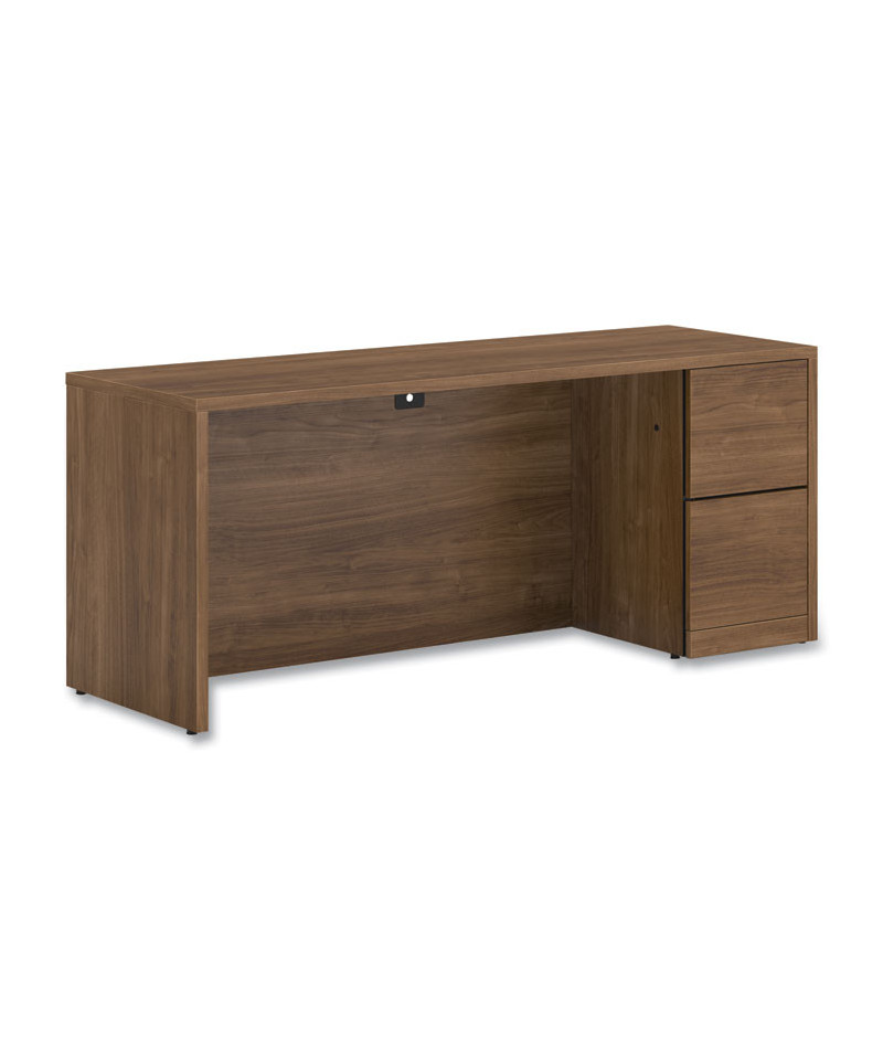 Hard-working, good-looking and built to survive a lifetime of overtime. Durable abrasion- and stain-resistant laminate. Clean, square edges for a streamlined look. Full-extension drawers operate on ball-bearing suspensions. High file drawer sides accommodate hanging file folders. Full-height modesty panel for privacy. HON® "One Key" core removable lock.