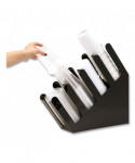 Keep coffee cups and lids at your fingertips. This graduated coffee cup and lid dispenser has 4 compartments and a 20-cup capacity per compartment. So, whether you're stocking up or taking out a cupit's easy to do thanks to the angled organizer design. Tidy up your motel, hotel, or bed and breakfast coffee bar or keep your office kitchen free of floating cups and lips. It's great for student housing and shared study spaces, too. With space for up to 80 cups, everyone will have something to pour their favorite beverage into. This also lets you easily see when something needs to be refilled or restocked. Then, when not in use, you can pick it up and store the lightweight dispenser in a pantry or closet. If needed, you can hand wash it with mild soap and a soft cloth. This cup and lid dispenser, and other Foundation Collection items, are great additions to your office or shared kitchen and they make great gifts for people who love to entertain regularly.