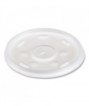 Fits 6-14 oz Foam Cups, Bowls & Containers-Flat with straw slot.