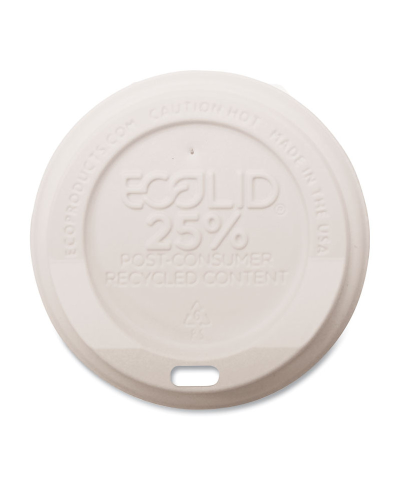 EcoLid 25% Recycled Content Hot Cup Lid, Fits 8 oz Hot Cups, Plastic, White, 100/Pack, 10 Packs/Carton