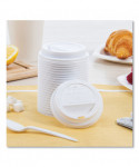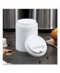 SOLO® cups fit tightly with Traveler drink-thru lids. Secure-fit long-sleeve, dome design features a convenient sipper-slot for on-the-go enjoyment. Unique inner-catch ring keeps the lid from popping-off if the cup should bend or flex.