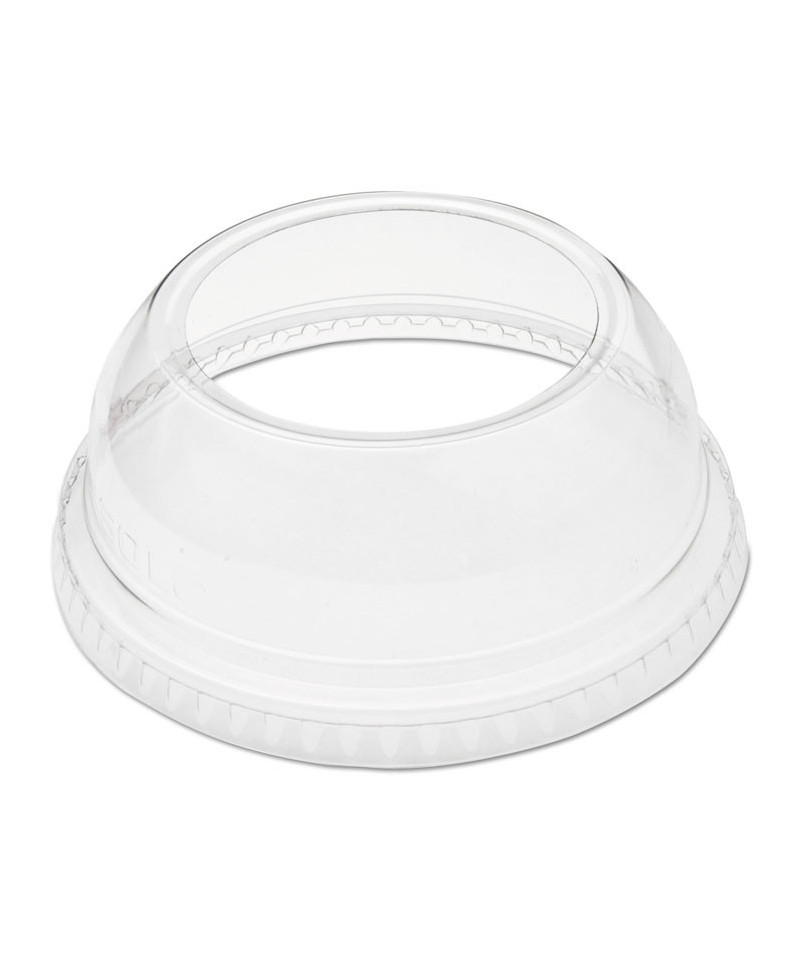 Open-top dome design accommodates both spoons and straws, making these lids ideal for both ice cream treats and cold beverages. Crystal-clear plastic allows easy beverage identification. Snap-tight fit prevents leakage and makes it easy to take your favorite chilled treats on the go. Lid works with a variety of cups, helping conserve storage space and speed assembly.