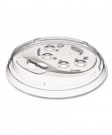 The perfect solution to going strawless. Specially designed recessed sip hole allows liquid to flow while holding ice cubes back. Features an elevated platform which allows extra room for toppings. Angled reservoir contains spills on the lid and diverts liquids back into the cup. One lid fits the five most popular cold cup sizes, reducing inventory and increasing operational efficiencies.