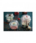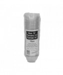 Made with recycled drink bottles which helps reduce landfill waste. Cost efficient and allows for broader temperature range than PLA cups. Snap lid fit ensures secure closure. Clear lid makes cup content easily visible. Stackable lids save space.