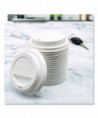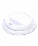 Vented to allow steam to escape. Reduces dribbles and spills. Open sip-through design.