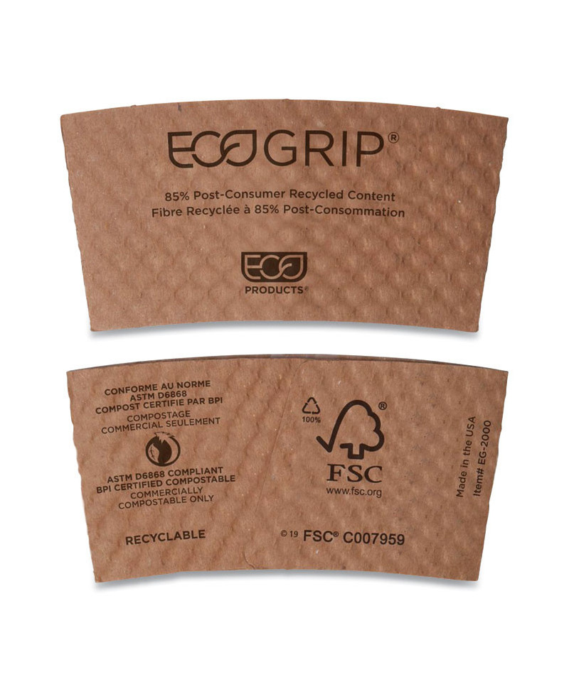 These Eco-Products recycled coffee cup sleeves are the ideal solution to keep your insulated from heat of your favorite hot beverage. Sleeves are designed to fit 10 to 20 oz hot cups perfectly. Made entirely from recycled content, these sleeves are not only compostable but also demonstrate a strong commitment to sustainability. Protect your customers' hands with these high-quality, durable sleeves. Elevate your business's sustainability efforts with Eco-Products Recycled Coffee Cup Sleeves.