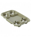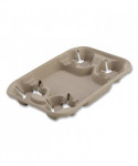 Indispensable trays securely hold full beverage cups. Convenient food compartment allows you to fill a whole order in one to-go container. Sturdy molded fiber construction minimizes the potential for tips and spills. Easy-to-load, nesting design simplifies order filling while minimizing storage space usage.