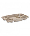 Indispensable trays securely hold full beverage cups. Convenient food compartment allows you to fill a whole order in one to-go container. Sturdy molded fiber construction.