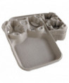 Indispensable trays securely hold full beverage cups. Convenient food compartment allows you to fill a whole order in one to-go container. Sturdy molded fiber construction.