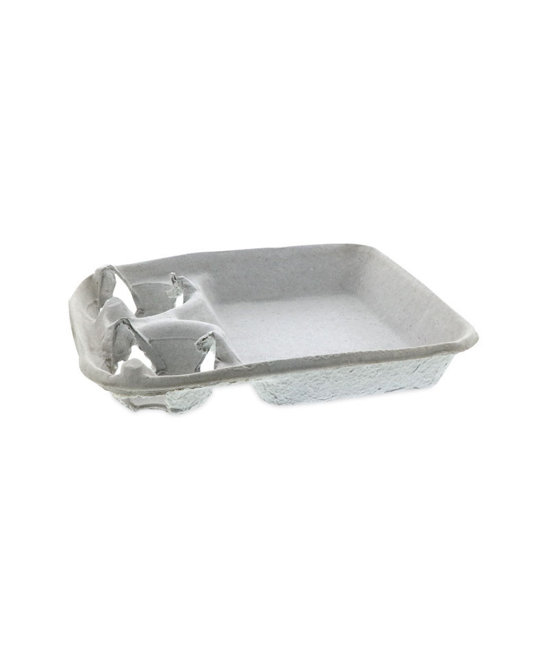 EarthChoice® fiber cup carriers are extremely durable and made with 100% recycled paper. Made with globally sourced materials. Ready to use with no set up required. Makes transporting on the go beverages simple and mess free. Perfect way to securely carry food and drinks in one handy tray! Handles a full range of cup sizes. Tray section is large enough for things like a hot dog or french fries keeping them secure with the elevated sides.