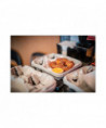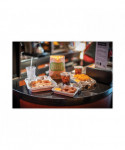Extremely durable and made with 100% recycled paper. Made with globally sourced materials. Ready to use with no set up required. Makes transporting on the go beverages simple and mess free. Perfect way to securely carry food and drinks in one handy tray! Handles a full range of cup sizes. Tray section is large enough for things like a hot dog or french fries keeping them secure with the elevated sides.