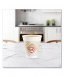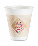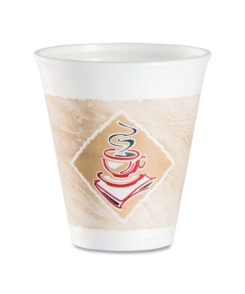 Add a touch of class to your office, breakroom or cafeteria with these attractive coffee-themed cups. Subtle color coding system helps customers and employees identify the correct cup size. Thermo-Glaze insulation helps maintain hot and cold beverage temperature while allowing you to hold cup comfortably. You'll save money because the Insulation reduces the need for double-cupping. Features attractive flared lip cup design and high-gloss surface.