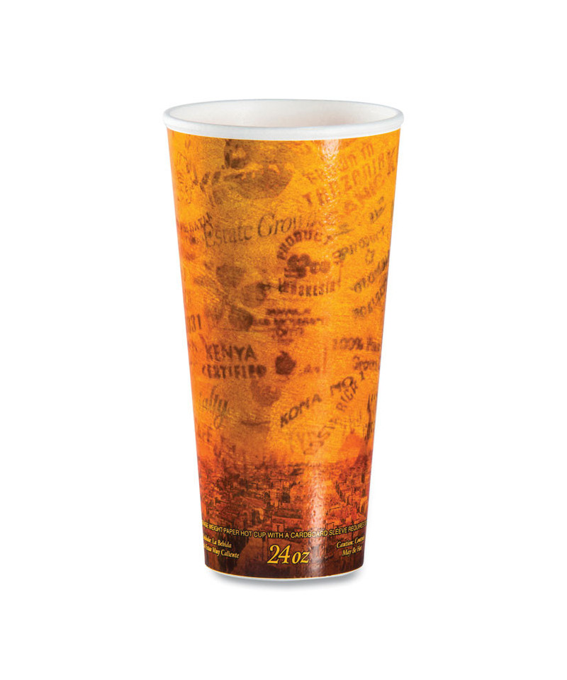 Core allows you to hold your cup comfortably while your beverage stays at the proper temperature. No need for double-cupping or cup sleeves. Seamless sidewall reinforces cup durability. Molded lip keeps lids on securely. Attractive coffee-themed design.