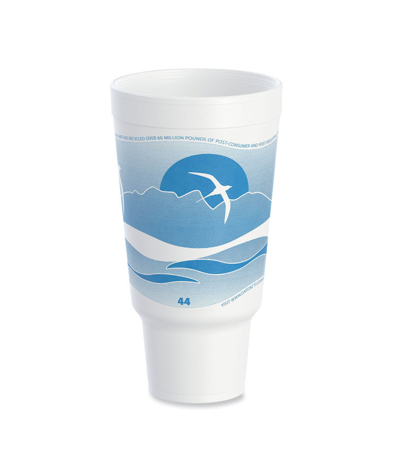 Horizon Hot/Cold Foam Drinking Cups, 44 oz, White/Ocean Blue, 15/Bag, 20 Bags/Carton