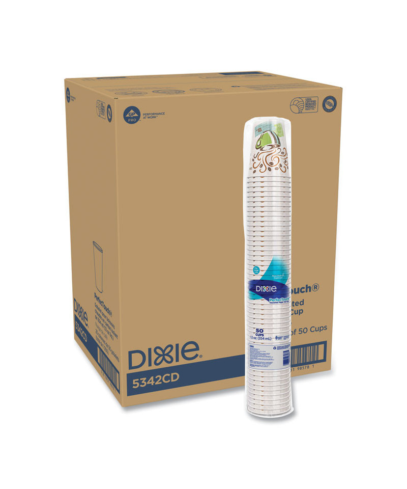Dixie® PerfecTouch® Insulated Paper Hot Coffee Cups are designed to help extend consumption time by keeping hot drinks warmer longer, helping improve overall product quality. The outer lining of these hot paper cups helps keep hands comfortable to the touch, eliminating the need for double-cupping or cup sleeves, which can help reduce waste and minimize overall cost. Insulated hot paper cups keep drinks hot and fingers cool. More hygienic because they are one-time use compared to permanent ware cups. Dual-purpose paper cups help with storage constraints and simplify ordering.