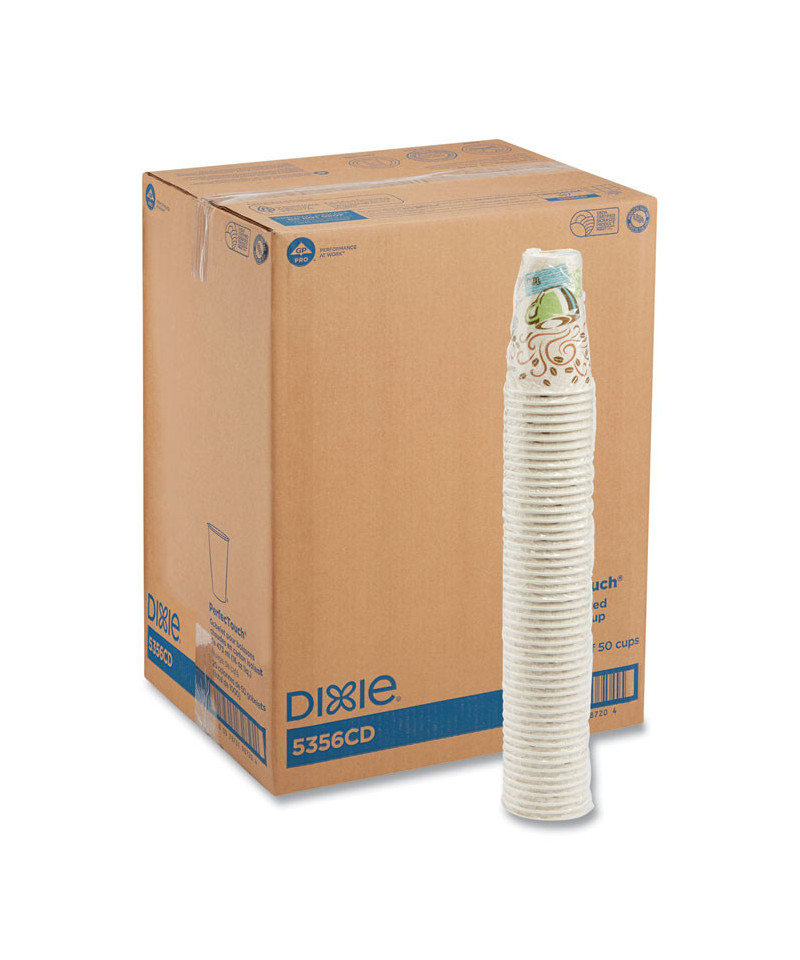 Dixie® PerfecTouch® Insulated Paper Hot Coffee Cups are designed to help extend consumption time by keeping hot drinks warmer longer, helping improve overall product quality. The outer lining of these hot paper cups helps keep hands comfortable to the touch, eliminating the need for double-cupping or cup sleeves, which can help reduce waste and minimize overall cost. Insulated hot paper cups keep drinks hot and fingers cool. More hygienic because they are one-time use compared to permanent ware cups. Dual-purpose paper cups help with storage constraints and simplify ordering.