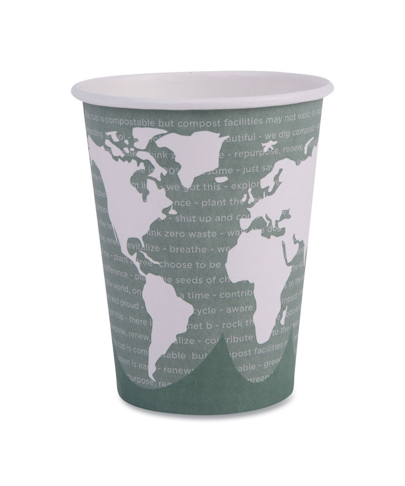 Hold the world in the palm of your hand, with cups that are designed with an attractive World Art™ pattern. Lined with Ingeo™, a leak-proof plant-based plastic, to prevent leaks. Sturdy cups are an excellent choice for hot beverages like coffee and tea.