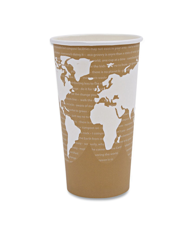 Hold the world in the palm of your hand, with cups that are designed with an attractive World Art™ pattern. Lined with Ingeo™, a leak-proof plant-based plastic, to prevent leaks. Sturdy cups are an excellent choice for hot beverages like coffee and tea.