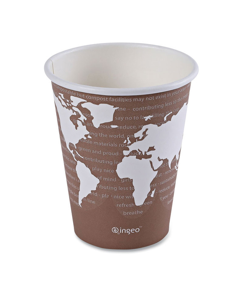 Hold the world in the palm of your hand, with cups that are designed with an attractive World Art™ pattern. Lined with Ingeo™, a leak-proof plant-based plastic, to prevent leaks. Sturdy cups are an excellent choice for hot beverages like coffee and tea.