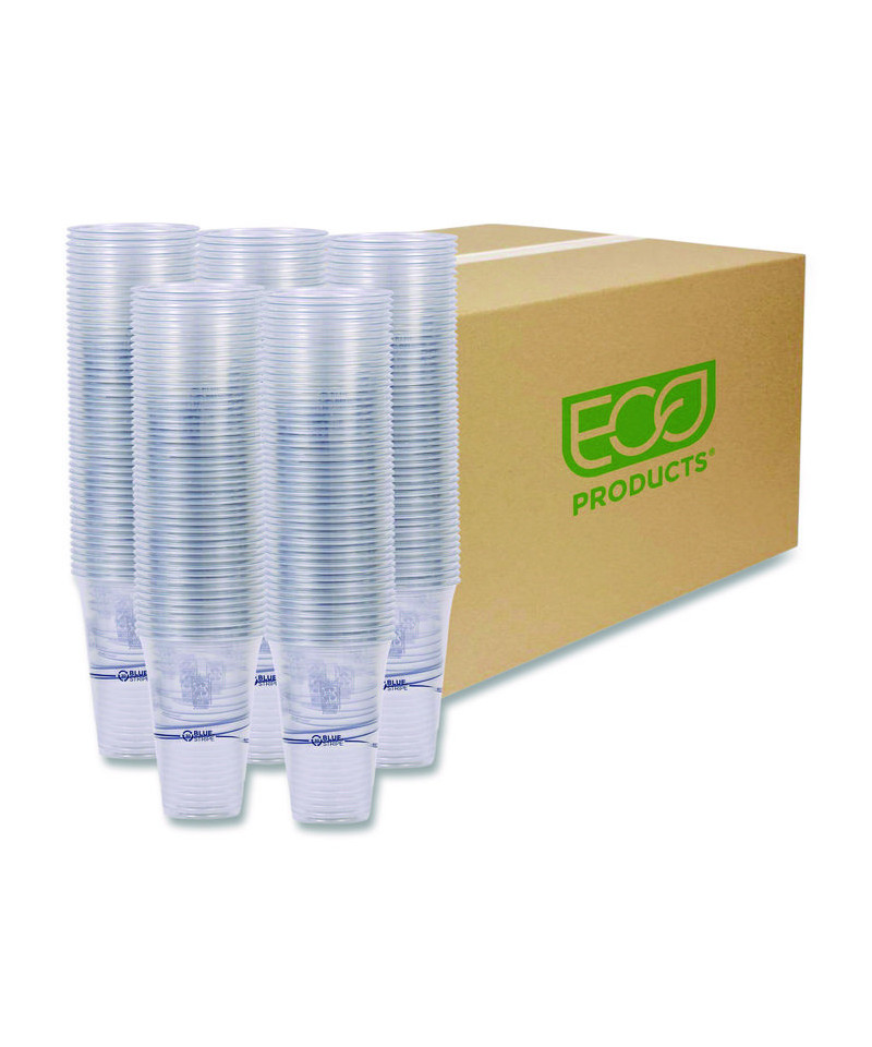 Opt for the durable and appealing BlueStripe™ cups, designed to combine strength with style. These cups are partially made from recycled PET bottles, contributing to environmental sustainability. Each cup features detailed information about its recycled content, highlighting the commitment to sustainabiity practices. The BlueStripe™ cups offer both functionality and a sleek appearance, making them a practical choice for any event or daily use. Sized to suit most beverage needs. Their robust construction ensures reliability while their recycled materials reflect a dedication to reducing waste. Choose BlueStripe™ cups to enhance your service with a responsible and attractive option.